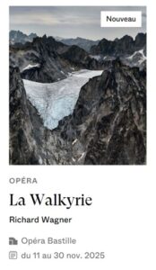 A l »Opéra Bastille se poursuit également le cycle de l »Anneau des Niebelung, avec cette année la Walkyrie en novembre et Siegfried en janvier.